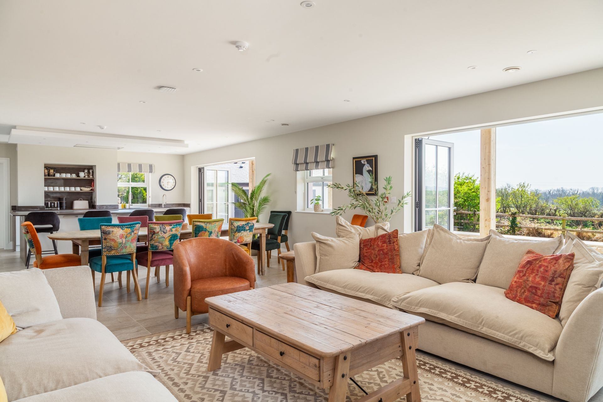 With five beautifully designed bedrooms, four of which feature en-suite bathrooms, guests will enjoy privacy and comfort throughout their stay. The home's two kitchens and two stylish sitting rooms provide ample space to cook, dine, and relax together.