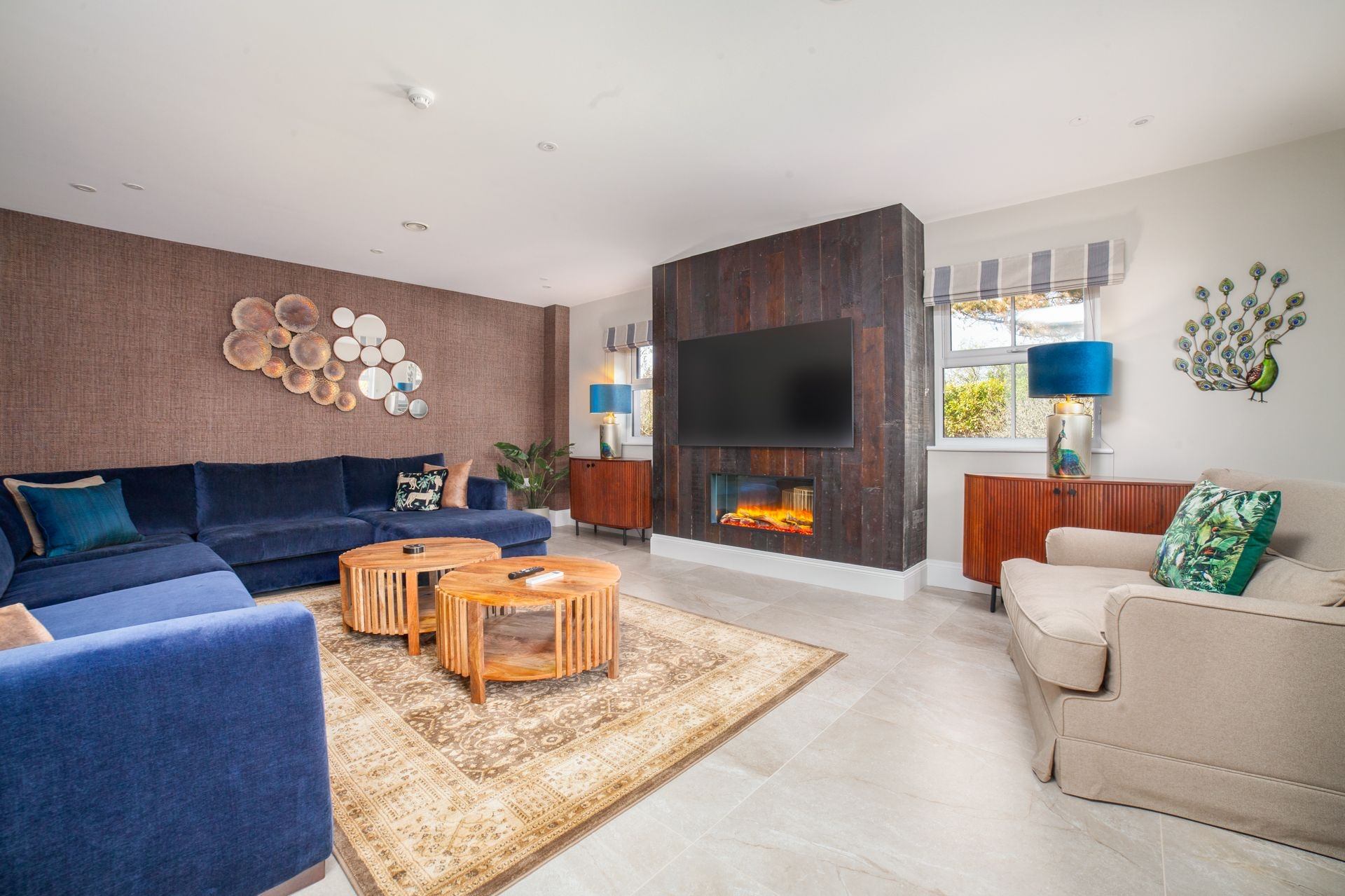 Second living area: Large sofa bed (available to book as a booking extra), desk, chair, smart TV.