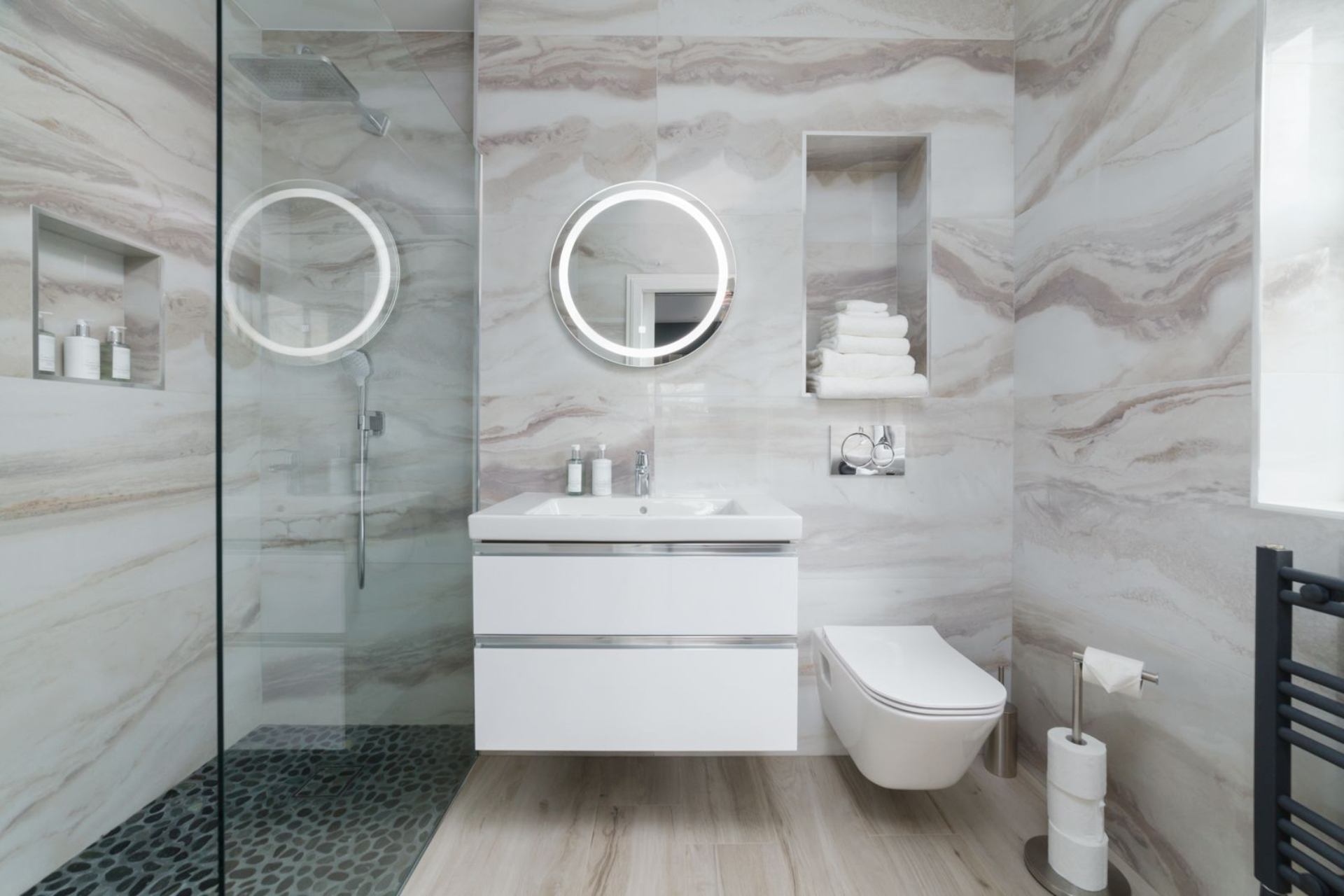 En-suite: Walk-in shower, WC, heated towel rails and wash hand basin.