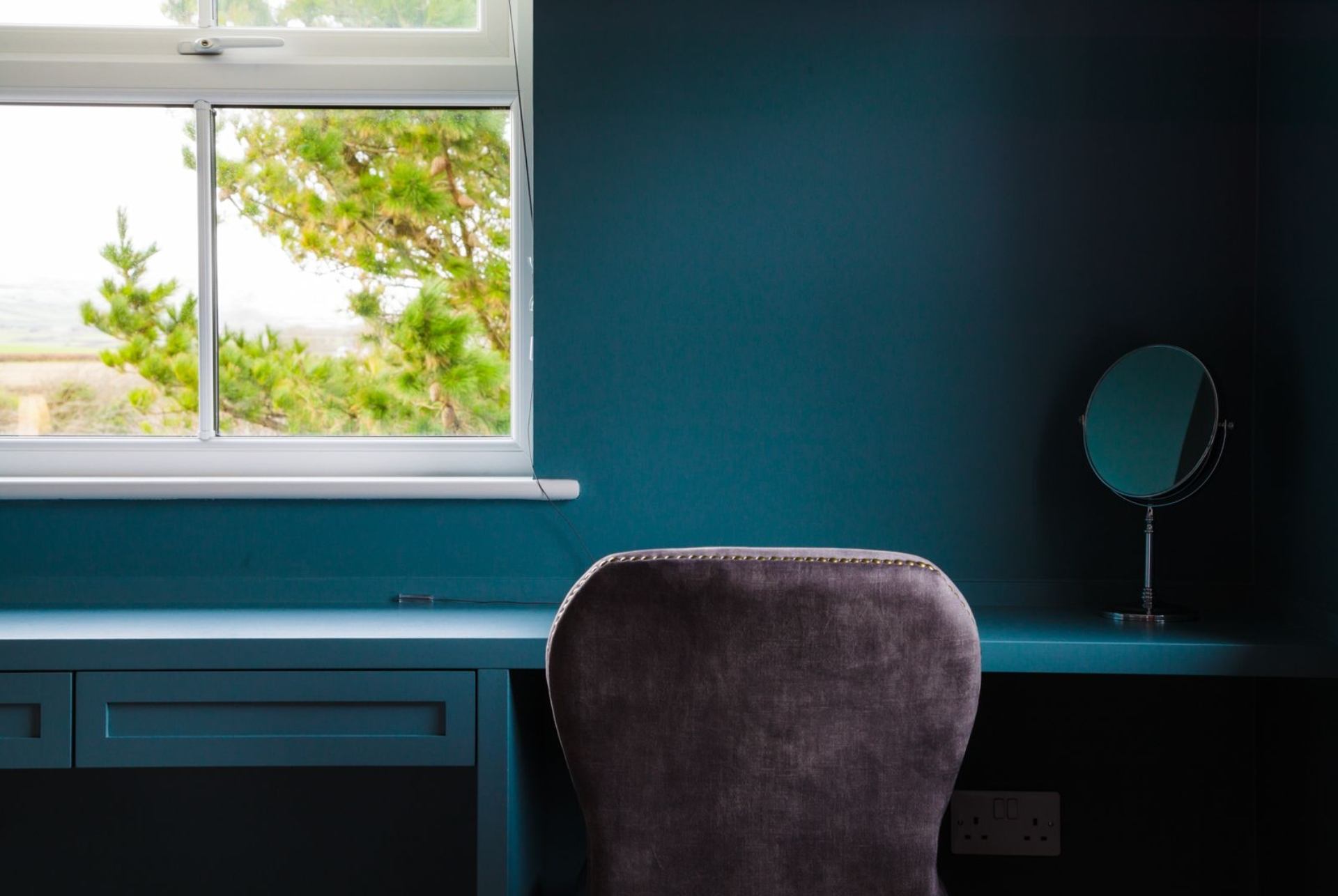 Bedroom 5: Super king size bed (can be configured as twin beds on request), bedside tables, contemporary hanging space, desk, mirror.