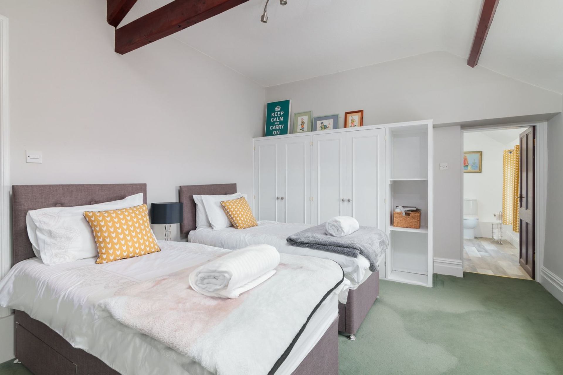 Bedroom 3: Twin beds, bedside cabinets, dressing table, wardrobe, chair and table