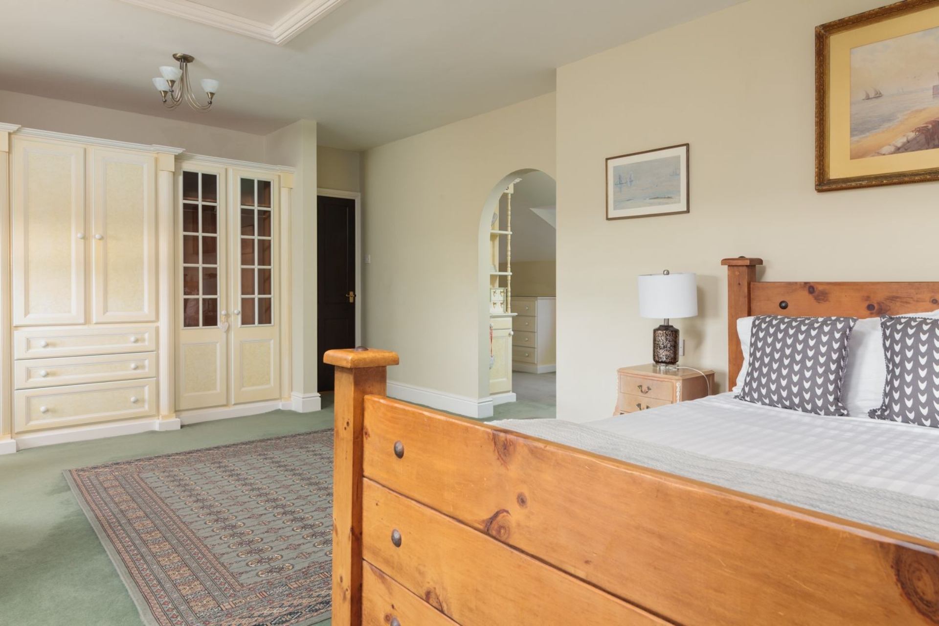 Bedroom 1: Kingsize bed, bedside cabinets, chest of drawers, large wardrobe, drawers, chair