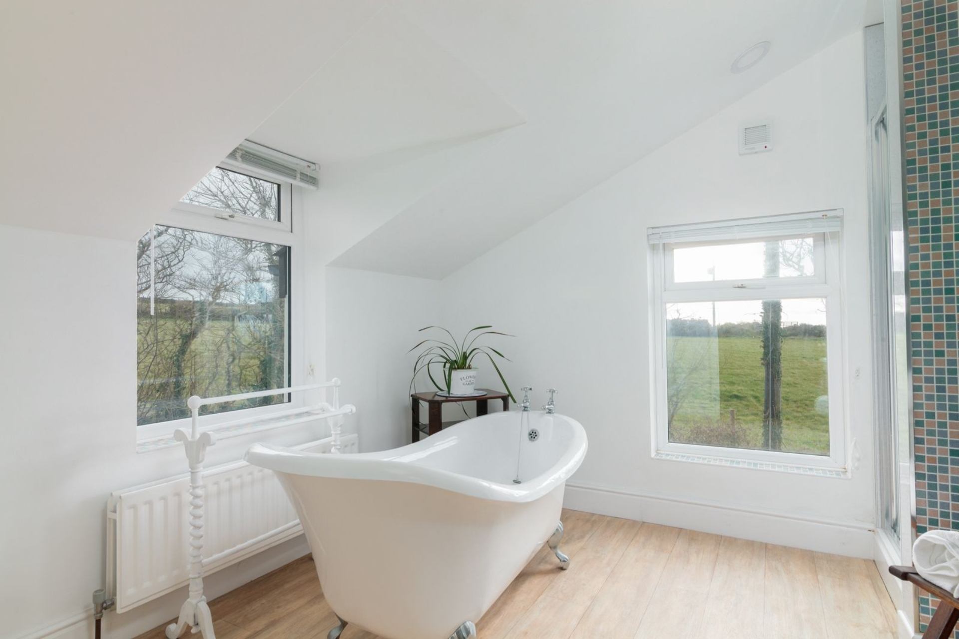 En-suite Bathroom: Freestanding roll-top bath, walk in shower, WC and wash hand basin.