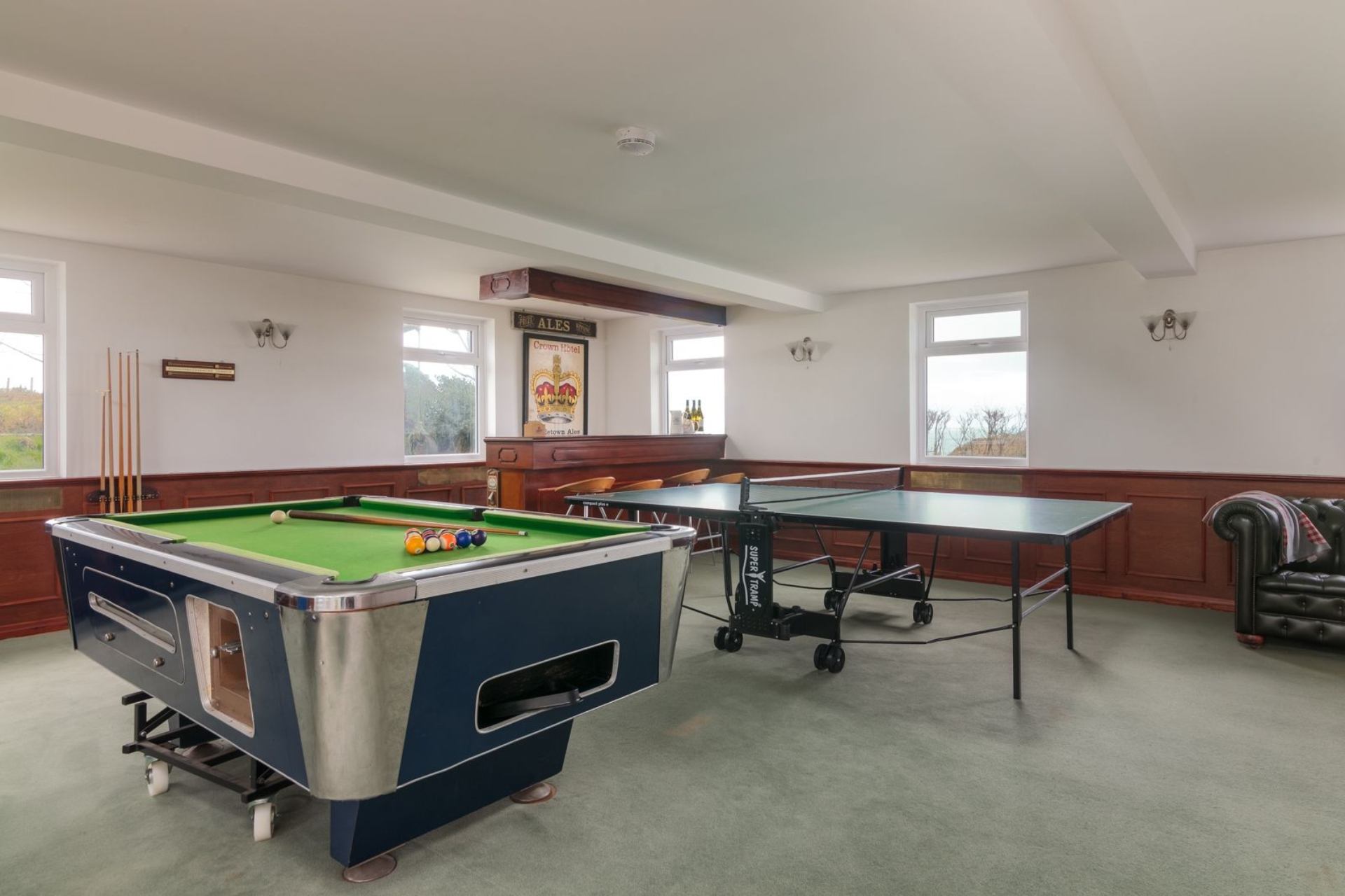 The house has three good sized bedrooms, consisting of a twin room and two doubles (all of which are en-suite). A large lounge offers comfortable seating for all guests, complete with a full sized pool table, table tennis and a bar! A small snug joins a large dining room which boasts a large table, ideal for entertaining. A large garden complete with pond, and an outdoor table is ideal for al-fresco dining!