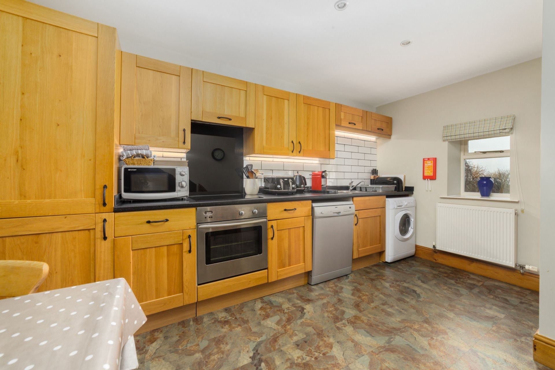 Kitchen & Dining area: Fully equipped kitchen and dining table with four chairs.