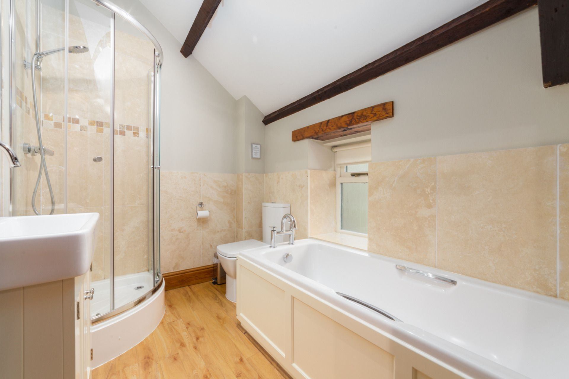 Bathroom: Separate bath and shower, washbasin and wc.