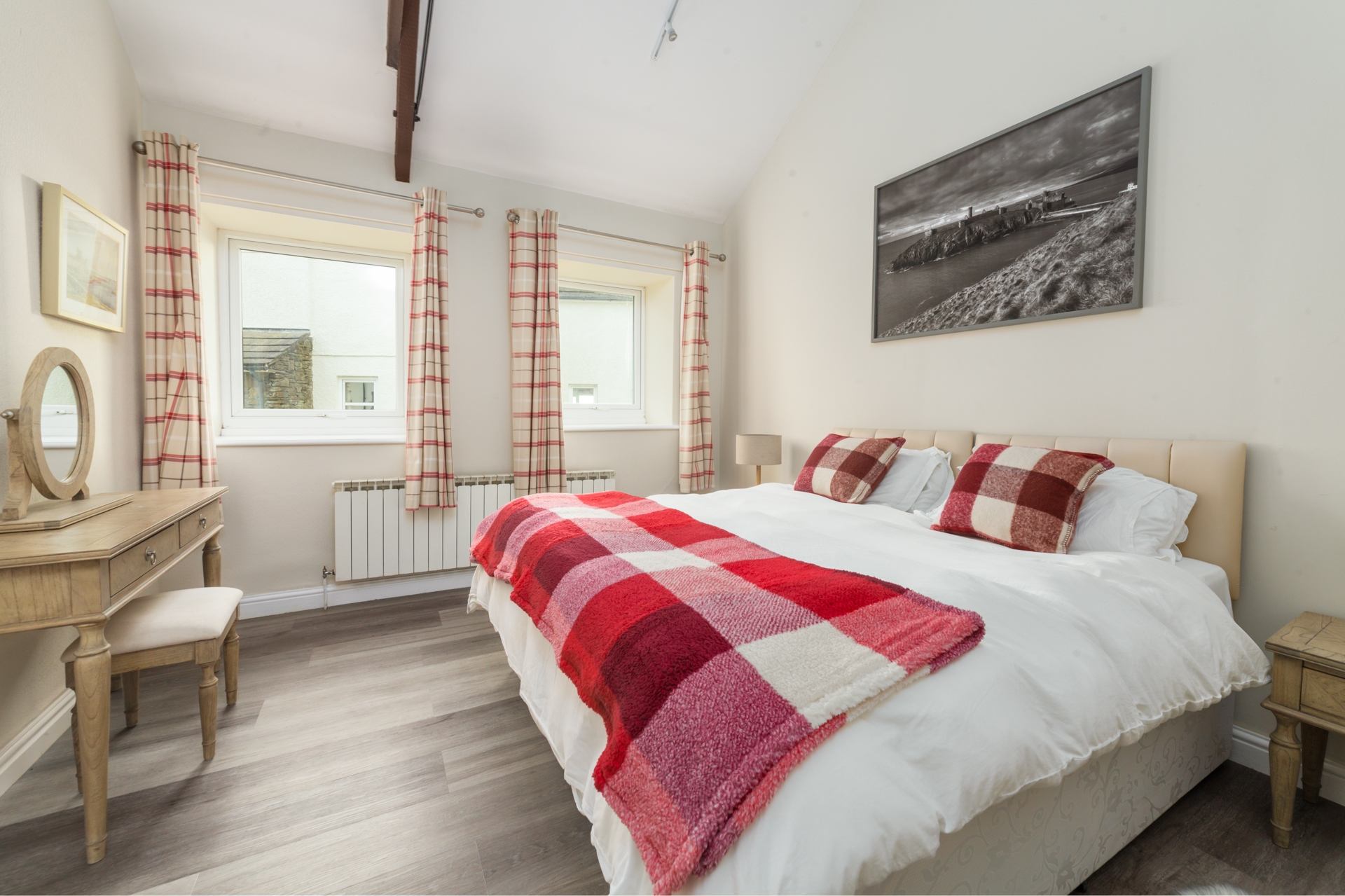 Inside, the cottage features a generously sized main bedroom with a super-king zip-and-link bed, which can be configured as either a double or twin. A cosy second bedroom offers twin beds, making it ideal for children or additional guests. A separate modern shower room completes the layout.