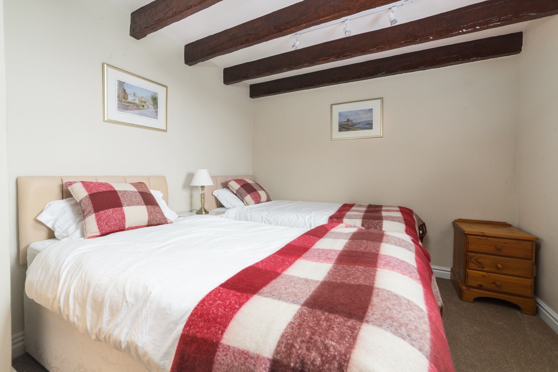 Bedroom 2: Twin beds, bedside tables, wardrobe.