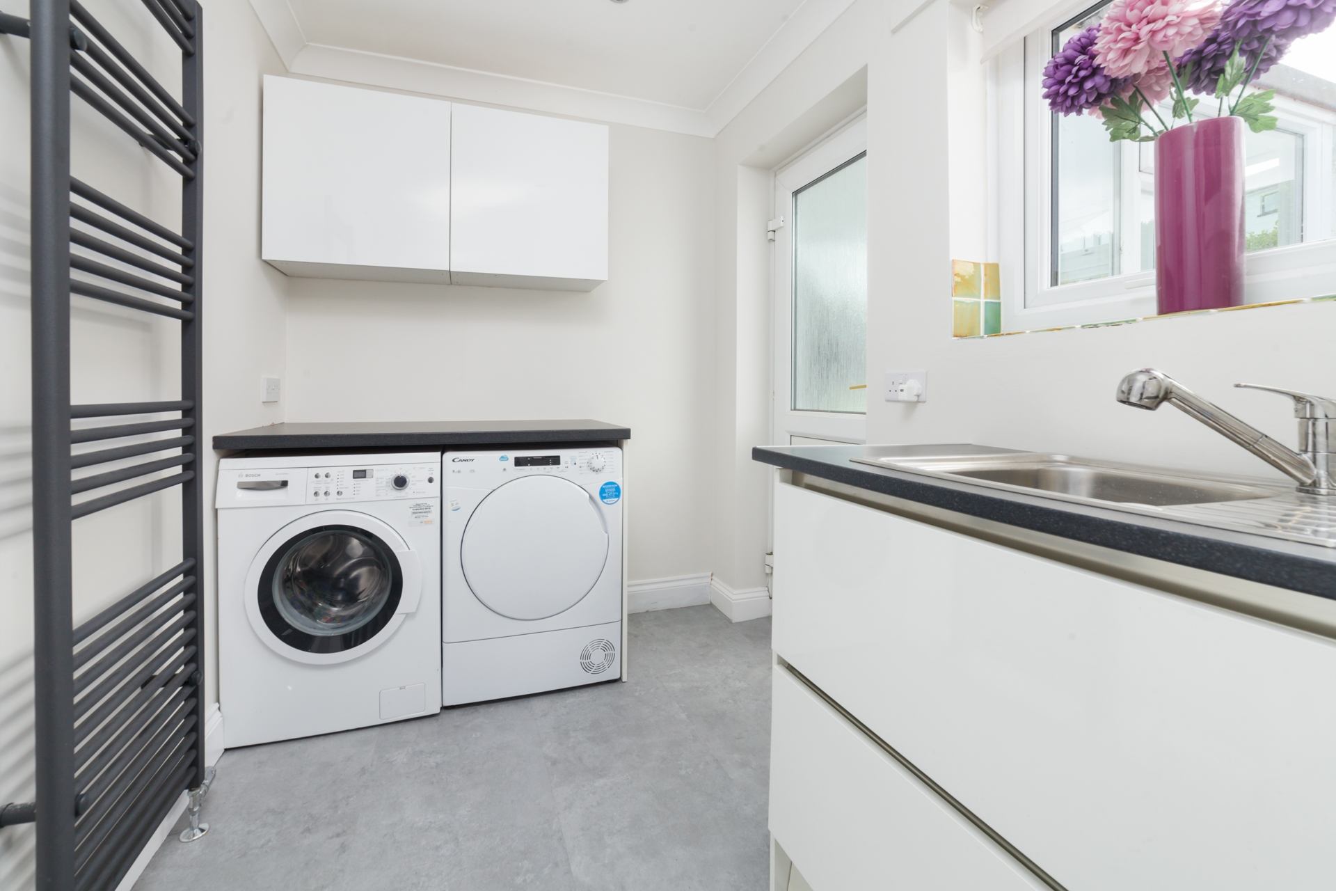 A separate utility room includes a washing machine and tumble dryer, ideal for longer stays or active guests returning from a day on the beach or walking the coastal paths.