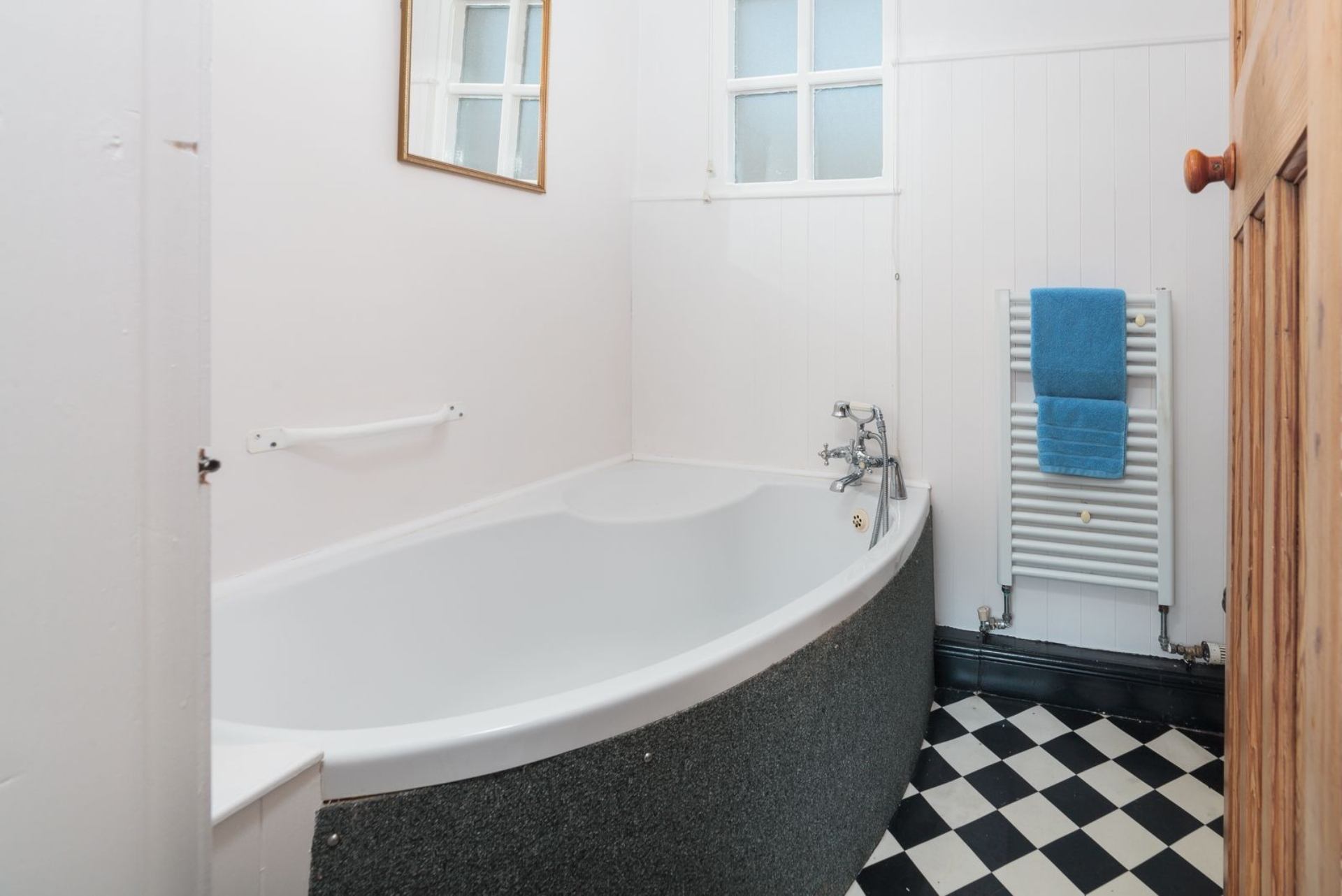The cottage is accessed by a single step into the conservatory and two steps into the main living area. The kitchen and bathroom are off the living area. The bathroom has a corner bath with hand held shower facilities.