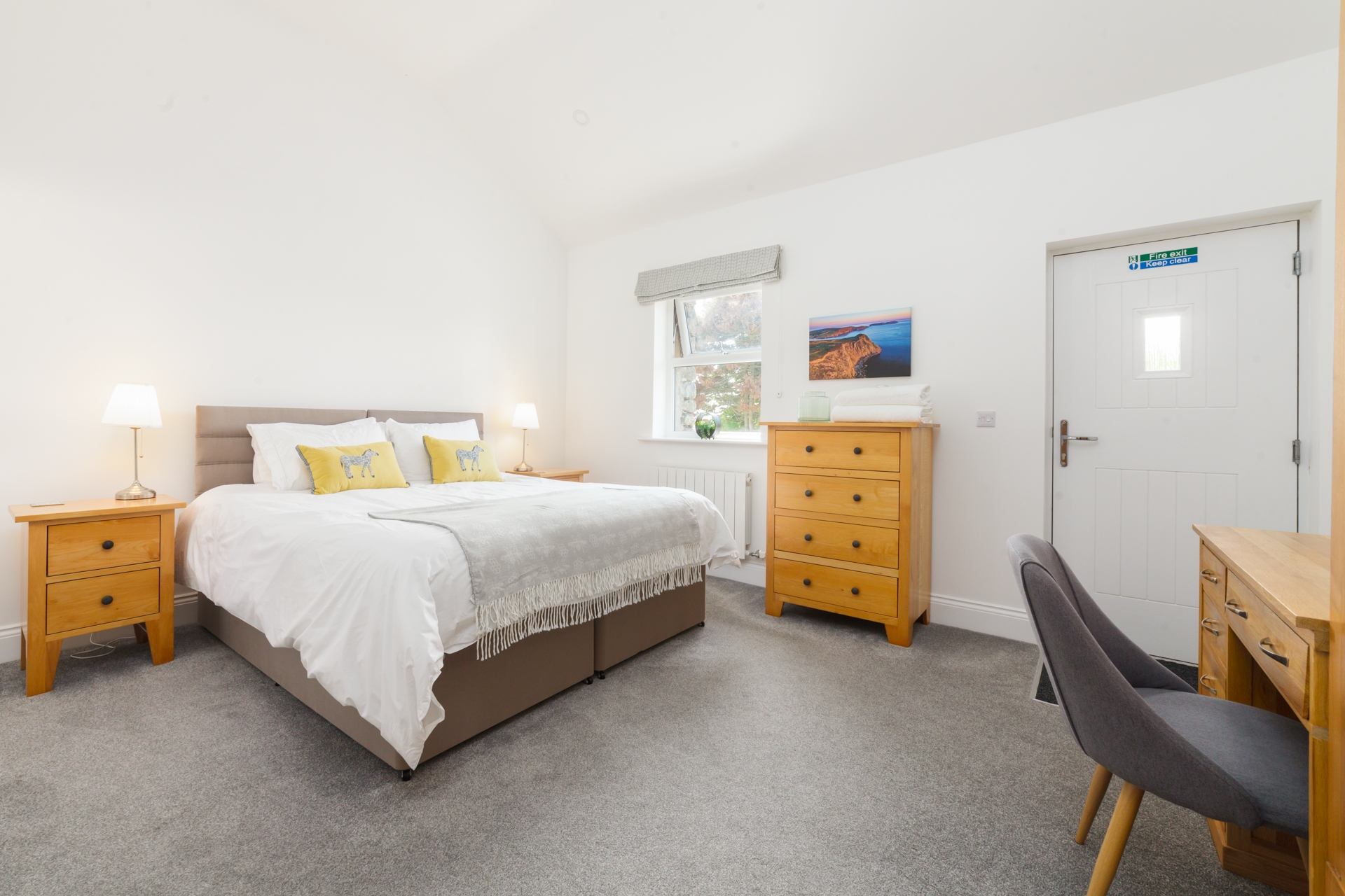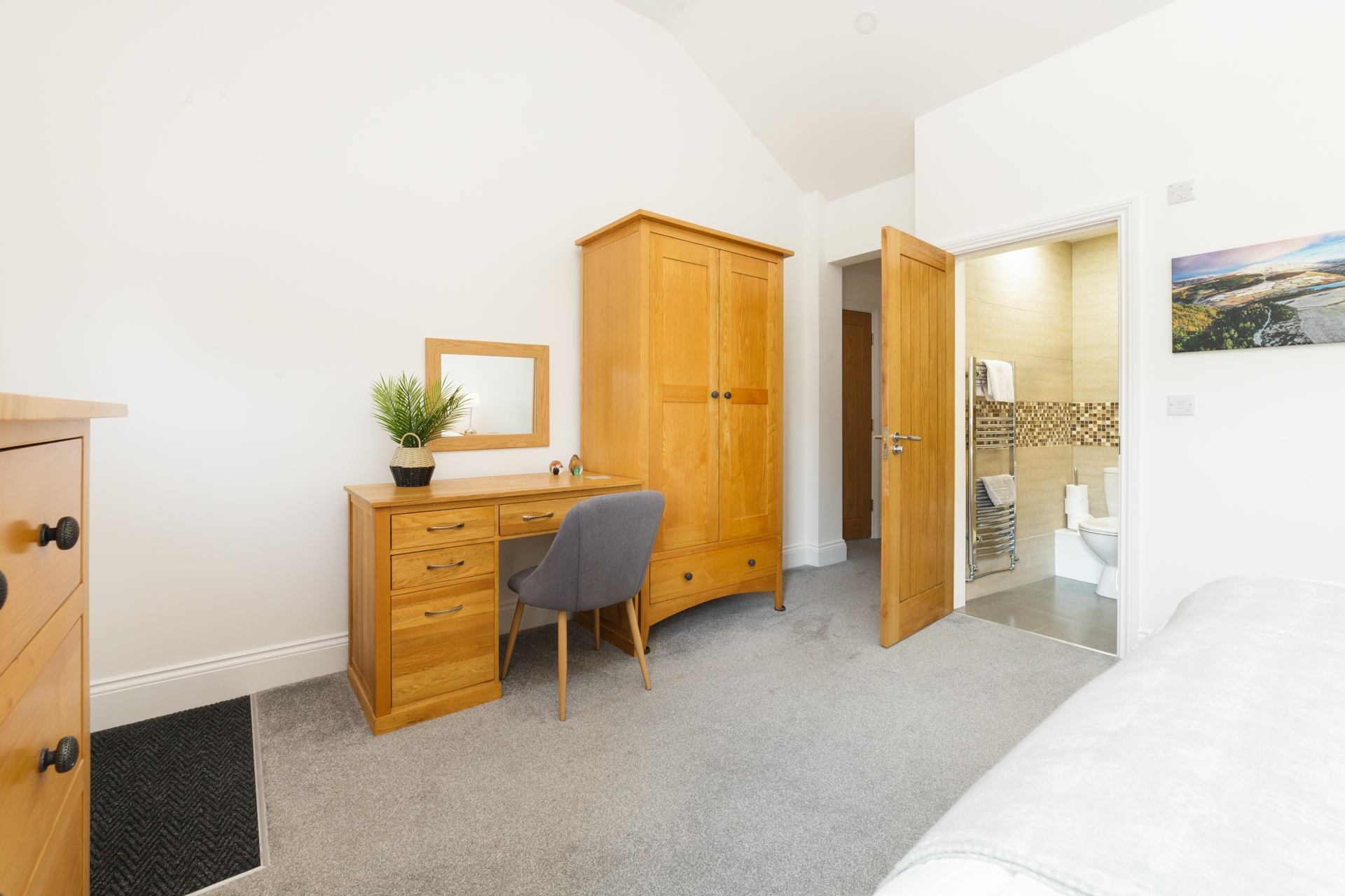 Bedroom 3: Super king size bed (can be configured as twin beds on request), solid oak wardrobe, tallboy and bedside tables. Located with level access from entrance.