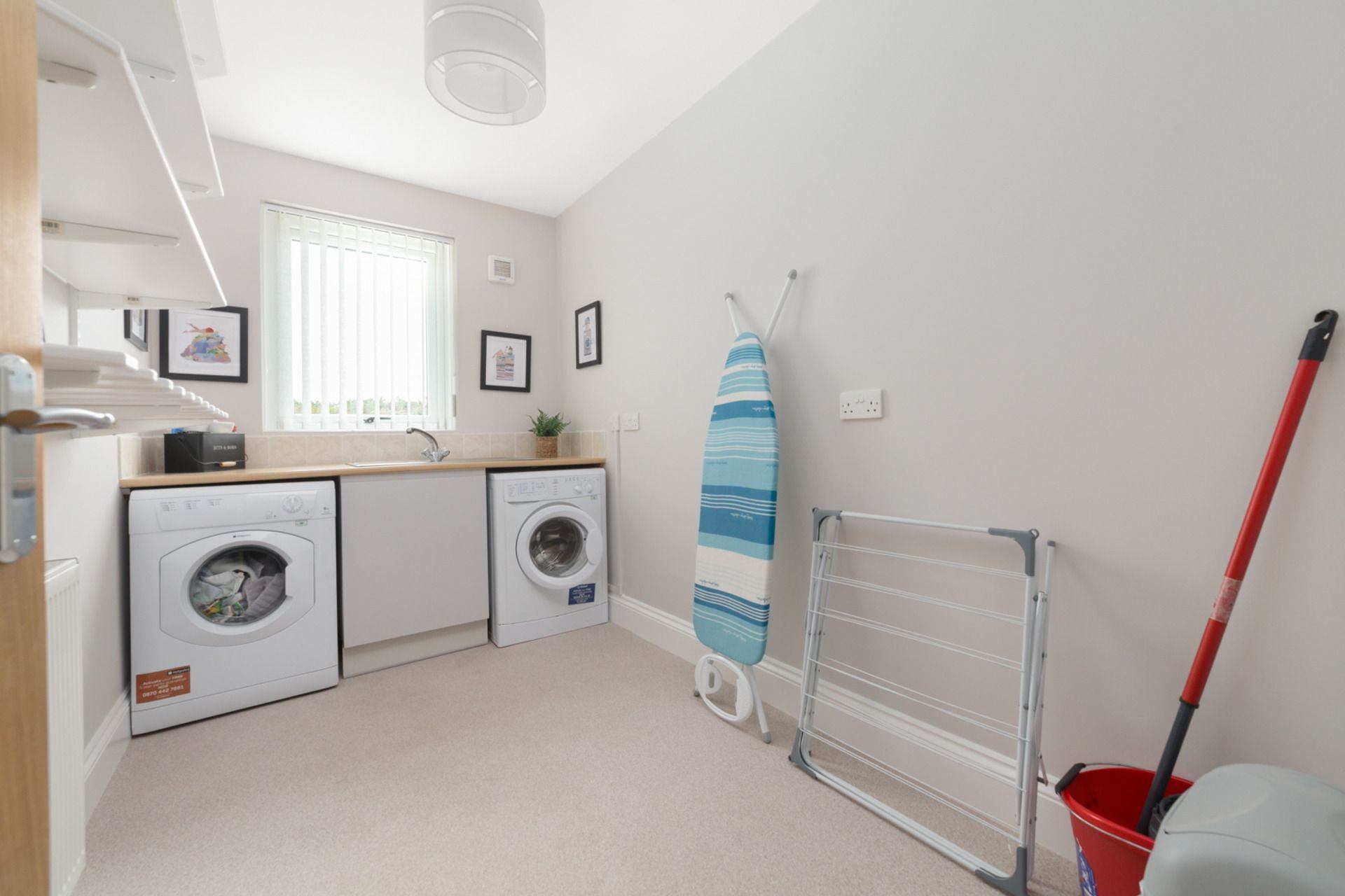 Utility room: Washing machine, tumble dryer, ironing facilities and drinks fridge