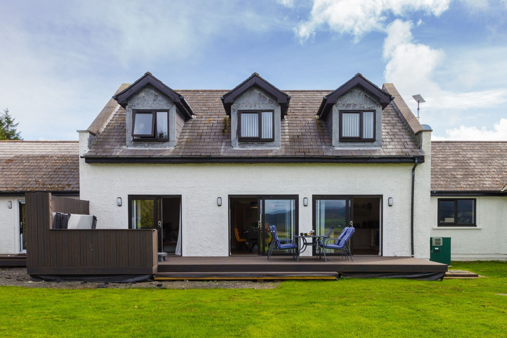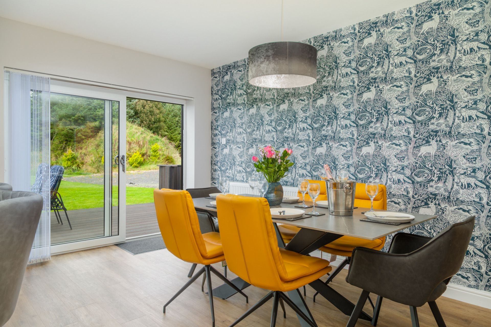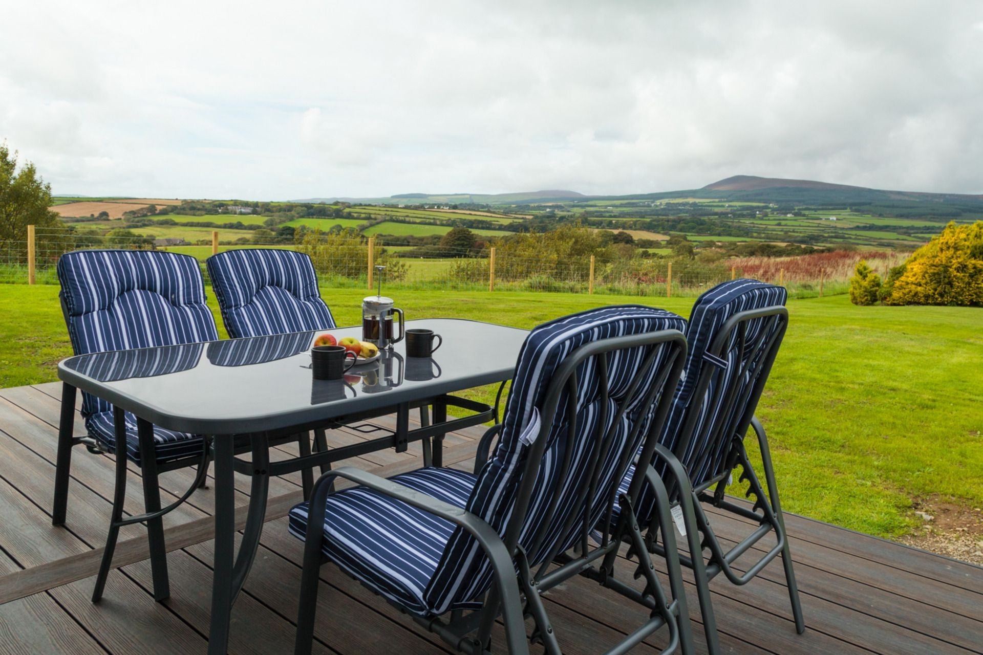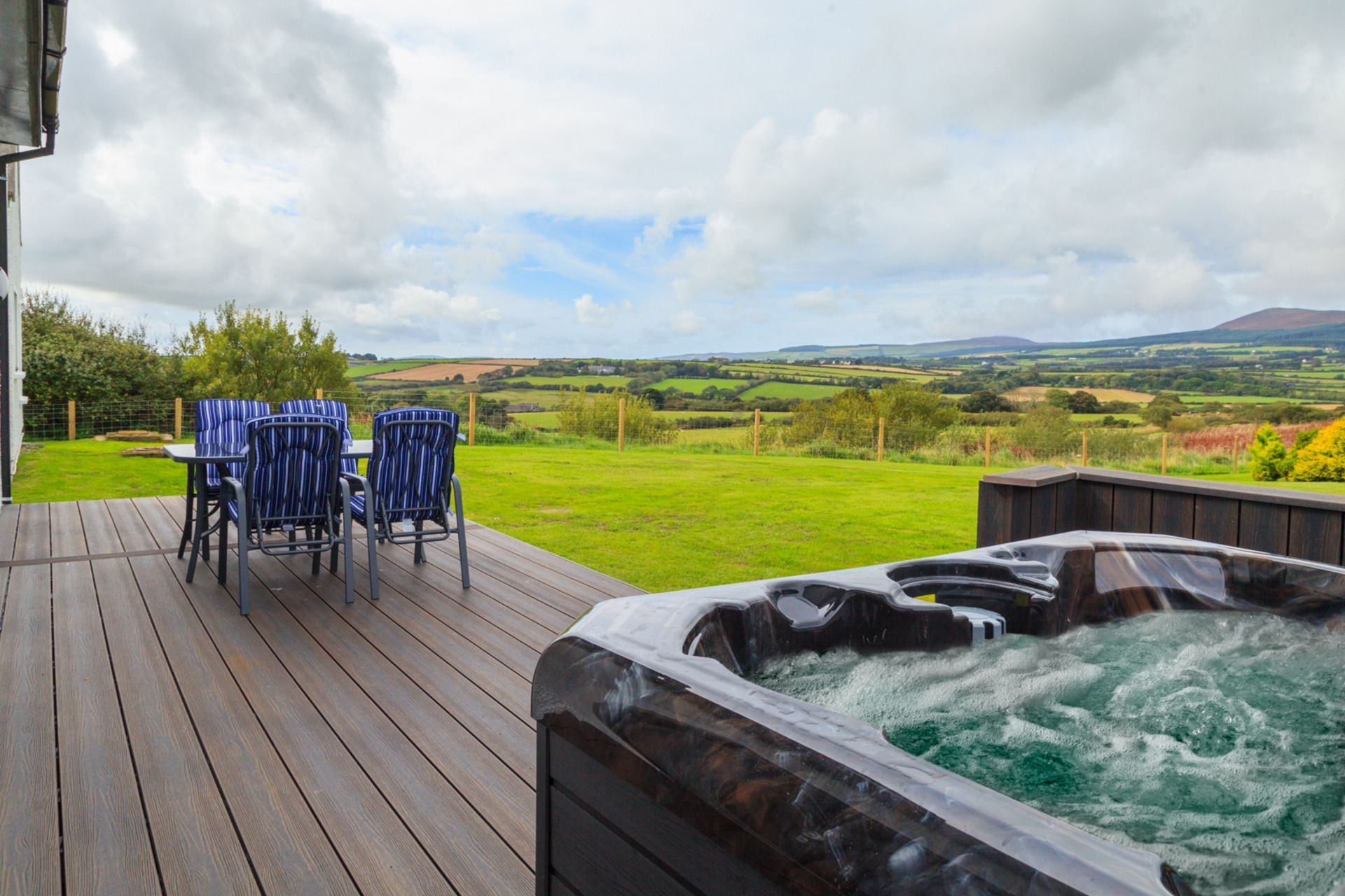 Outdoor: Decking area with table and chairs, accessed via French doors. Enjoy the hot tub for up to six people, available to add to your stay for£10 per day.