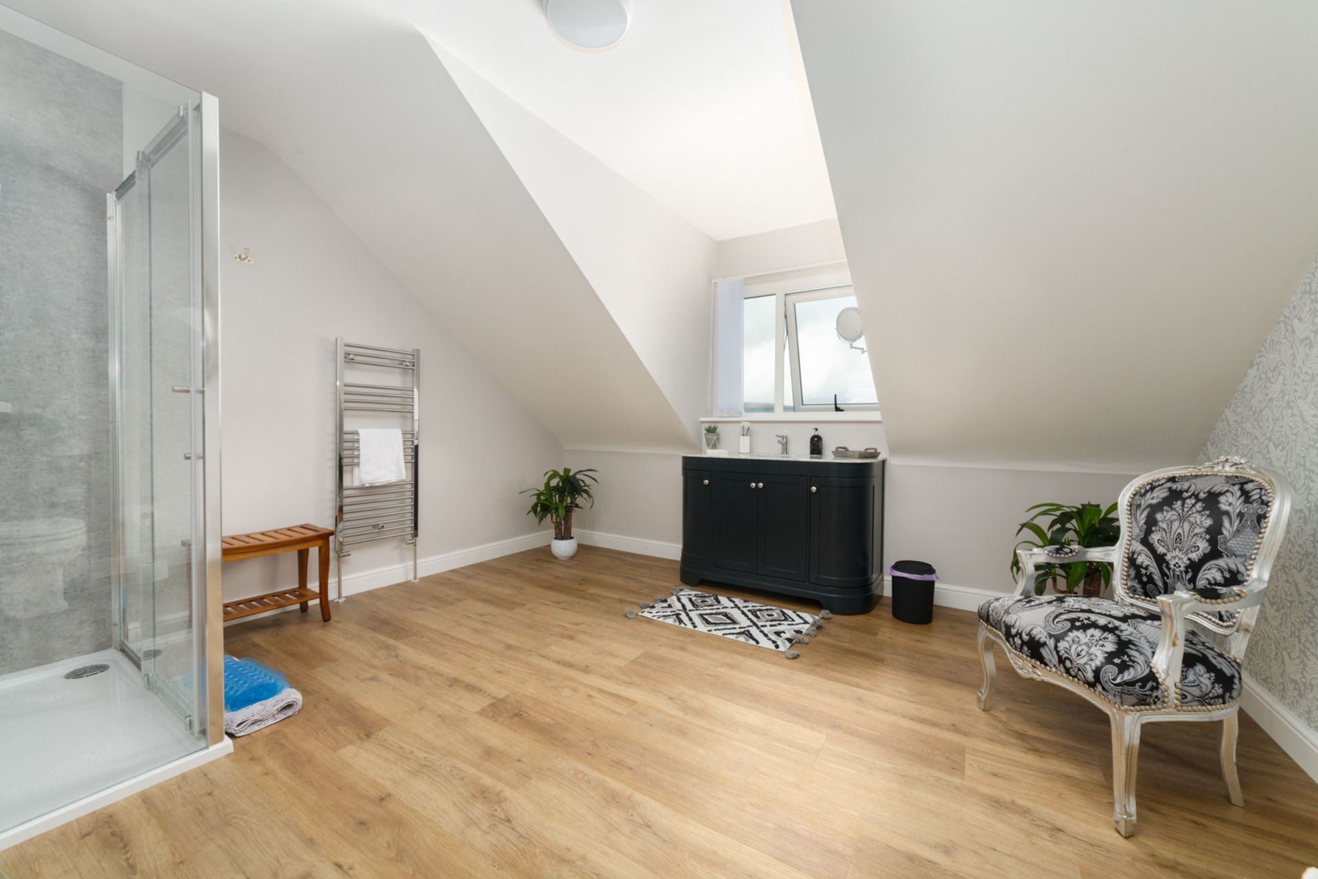 Family bathroom: Walk-in shower, wash hand basin and WC