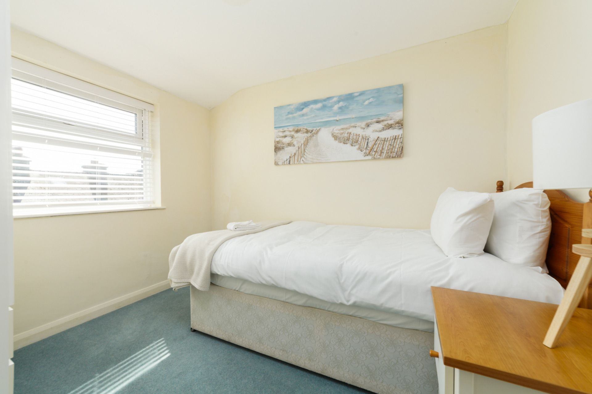 Bedroom 2: Single bed, bedside tables, wardrobe