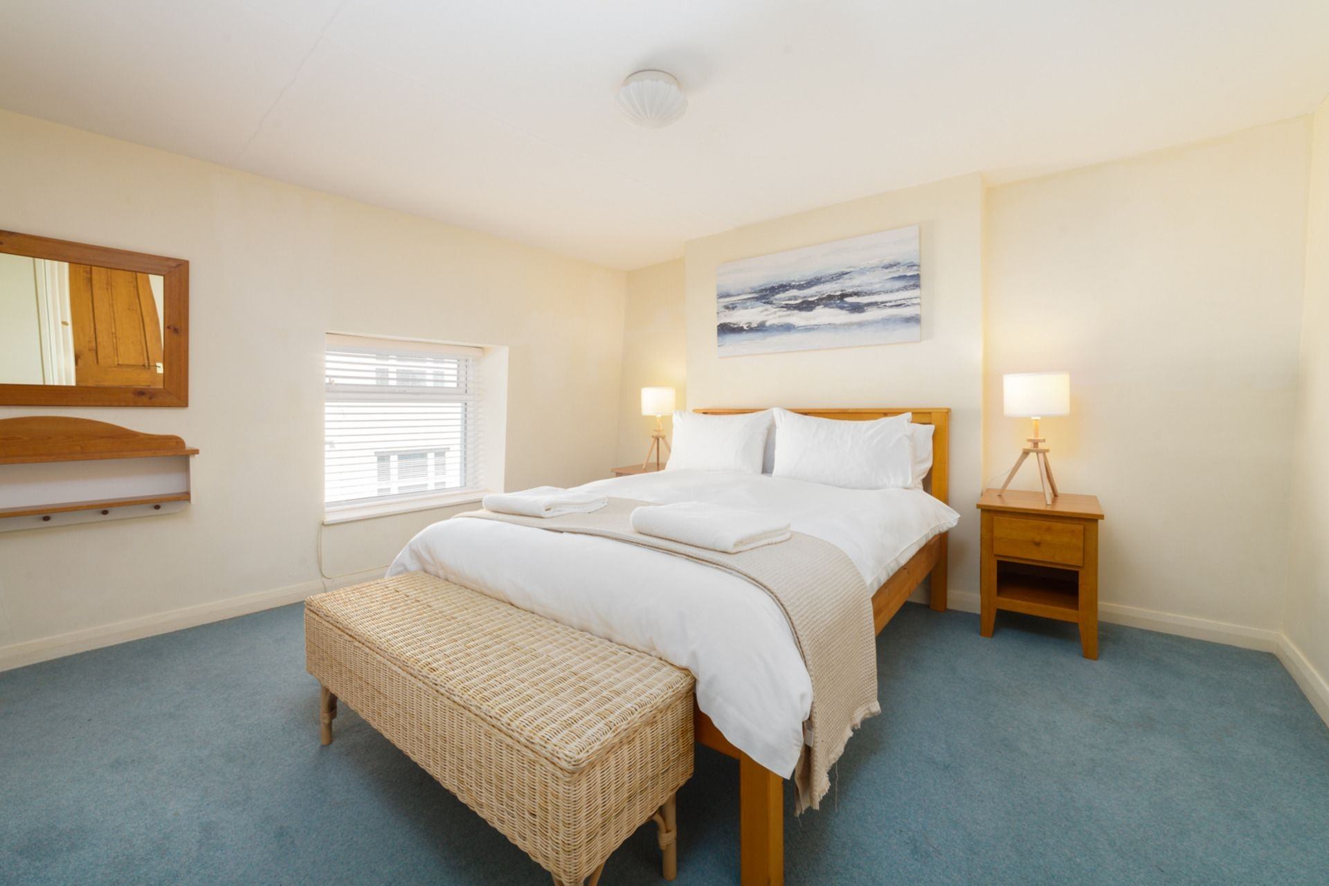 Bedroom 1: Double bed, bedside tables and wardrobe and drawers