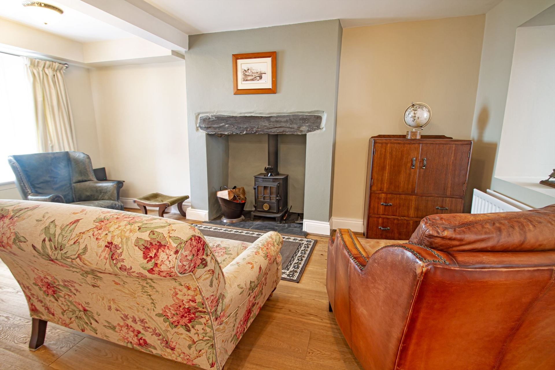 Snug: One sofa, two armchairs in the lounge area featuring log burner.