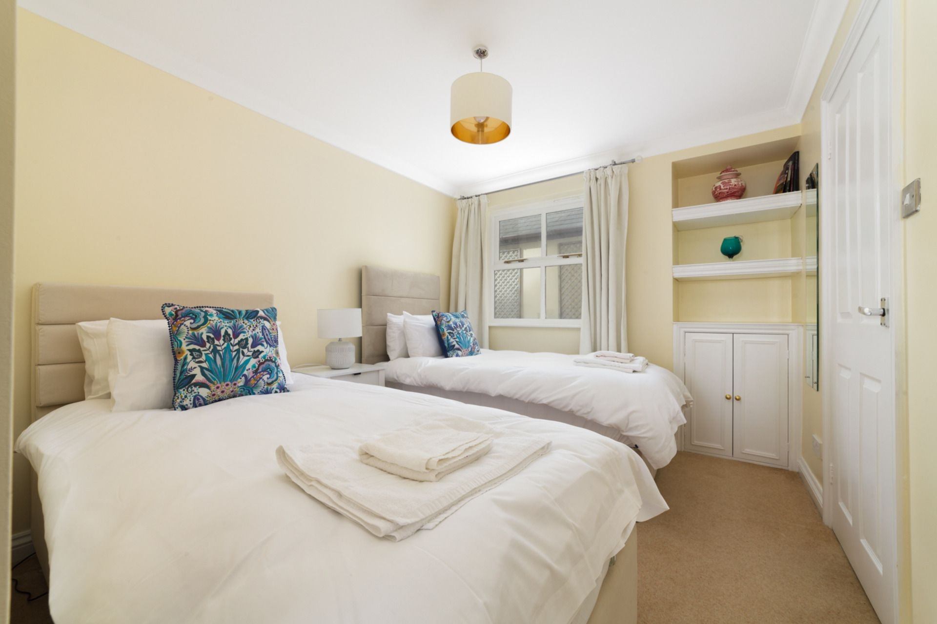 Bedroom 2: Twin beds, built in wardrobe and bedside table. One of the single beds is orthapedic.