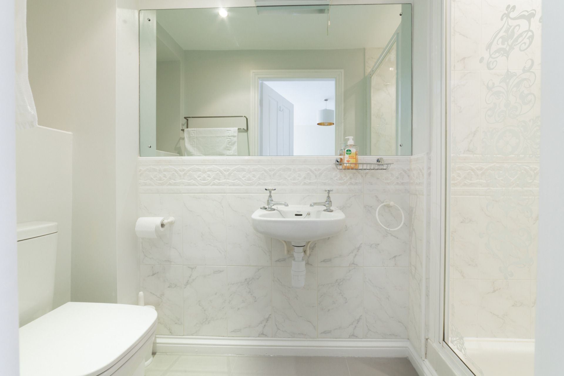 En-suite bathroom: Walk-in shower, wash hand basin and WC