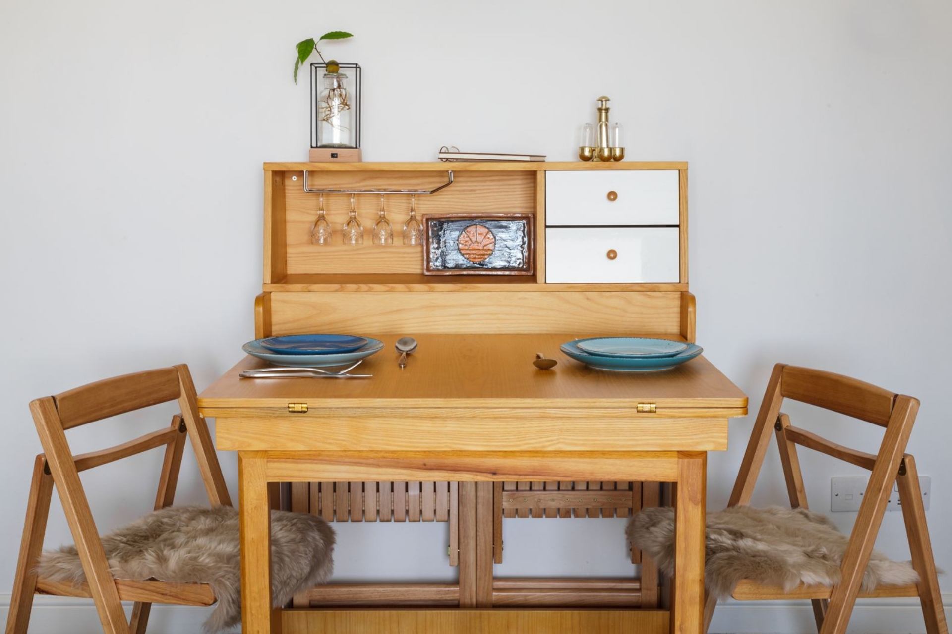 The living room has a magnificent Manx "Chiollagh" stone fireplace with wood burning stove, comfortable seating and a fold-out dining table seating up to four people. Kick back and relax on the chairs in the bay window of the living room which overlooks Port Erin bay and Bradda Head, often bustling with beachgoers in the summer months. The beach is a popular spot for dog walkers in the quieter months too! Baljean is pet friendly too, perfectly geared up to bring them with you as the property features a washroom with a basin around the side of the property.