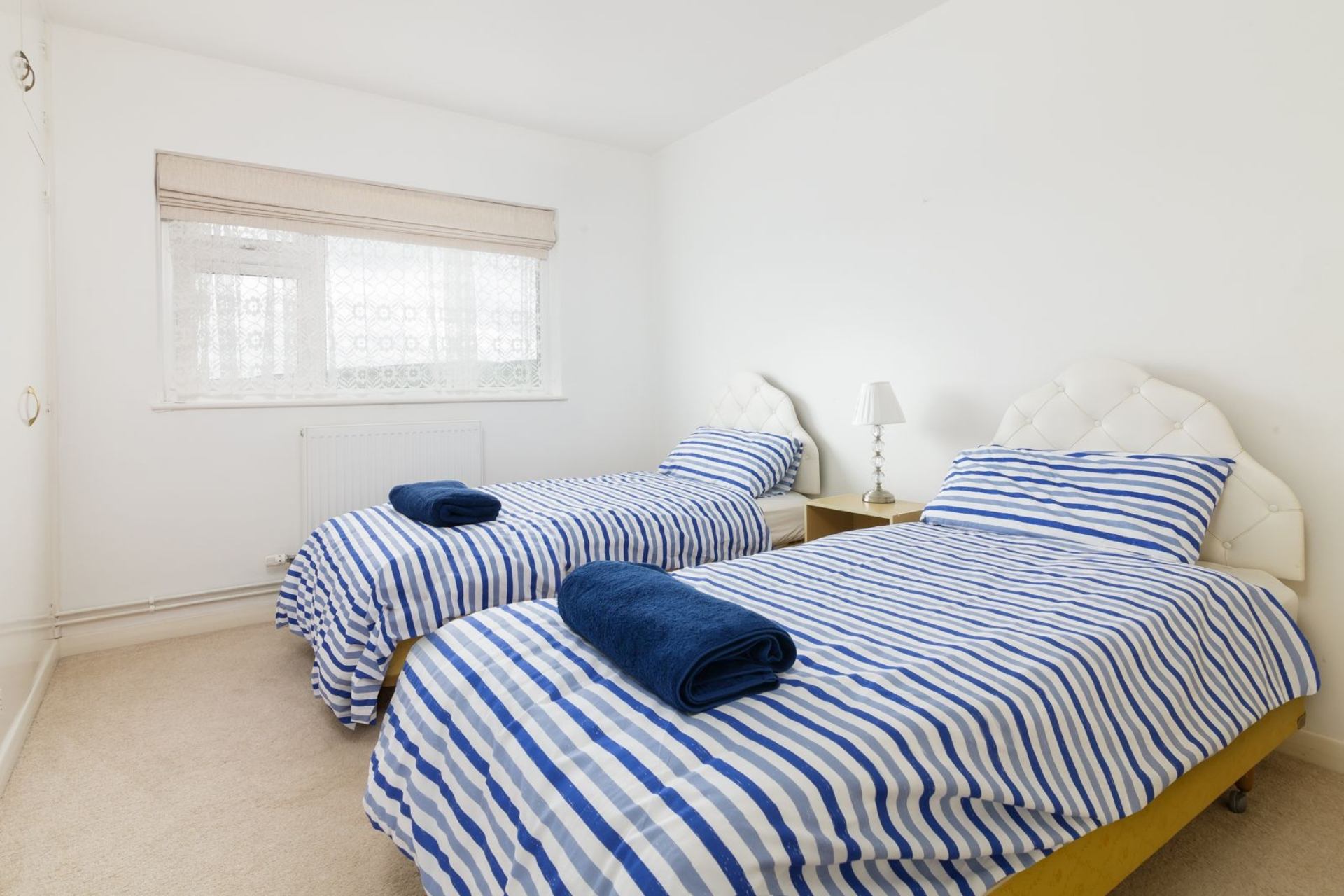 Bedroom 2: Twin beds, bedside cabinets, chest of drawers, wardrobe.
