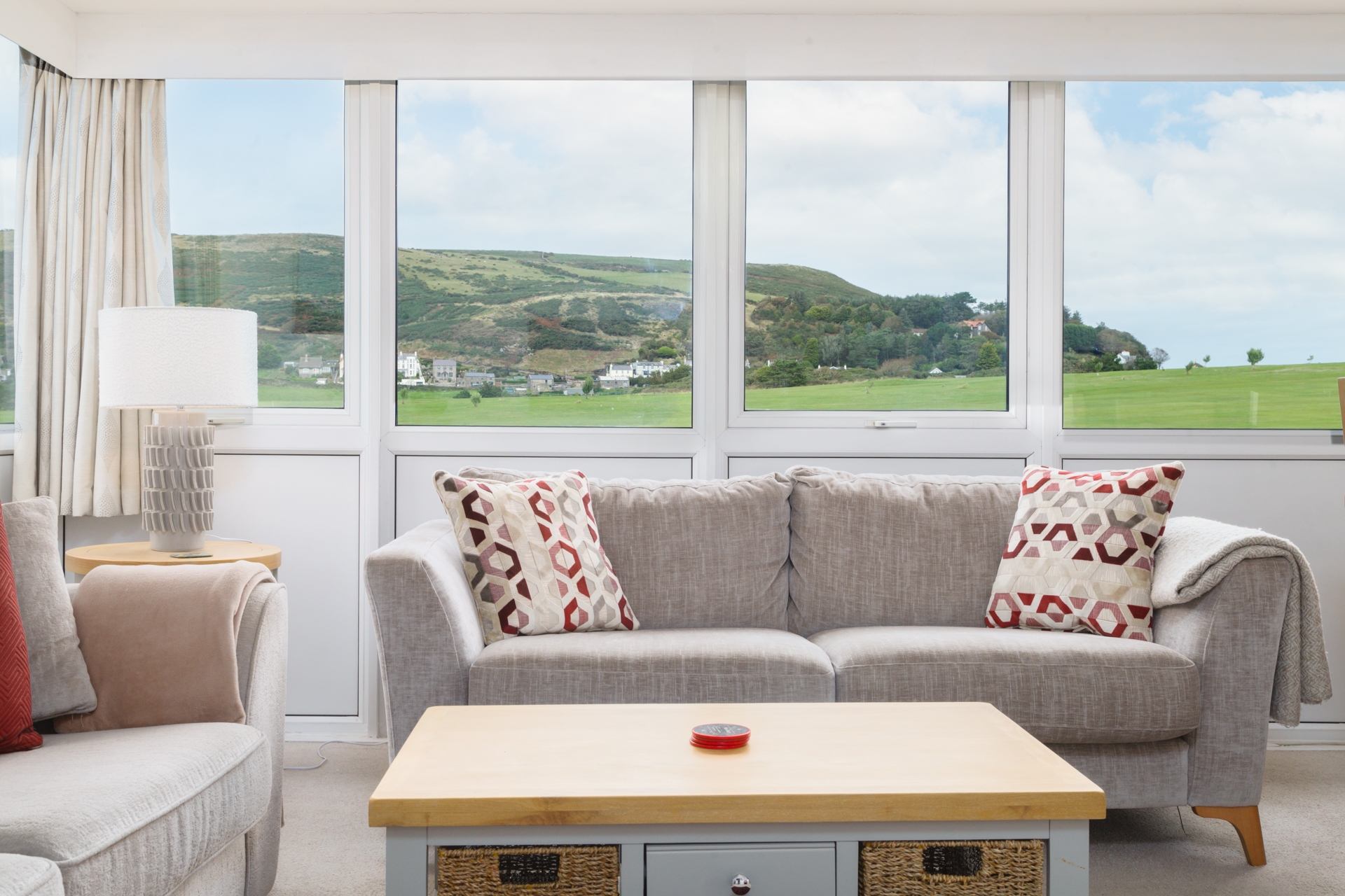 Scenic View is a spacious self catering apartment offering panoramic views across Rowany Golf Course to the hills of Bradda and Surby to the north. Set in peaceful surroundings, but just a few minutes walk from Port Erin, its beach and general amenities the apartment is located right next to the 1st Fairway of the Rowany Golf Course making it an ideal choice for golfers.