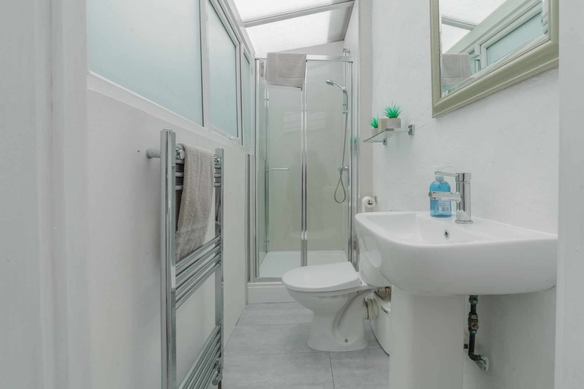 Family bathroom: Walk-in shower, WC, wash hand basin.