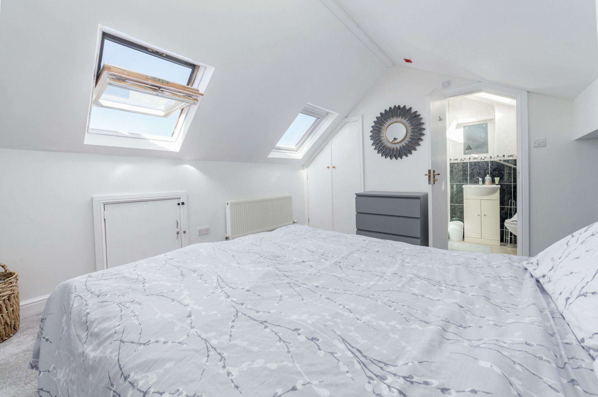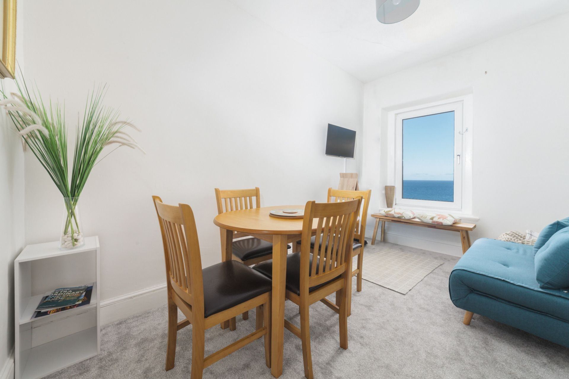 The apartment itself consists of a Lounge and Dining room at the front of the building with the kitchen and a twin and single room to the rear. The master bedroom is located up a short steep staircase and this room also benefits from an ensuite shower room and views of the bay from the velux roof windows.
