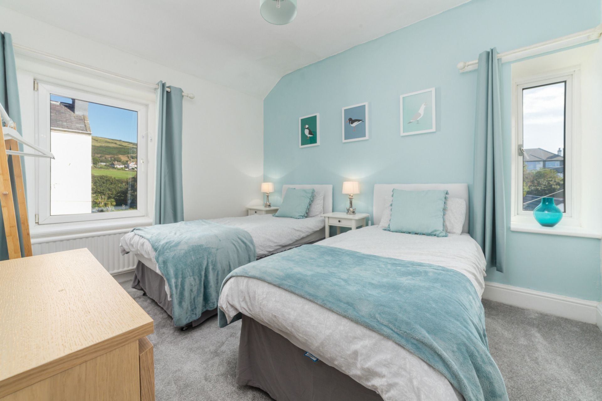 Bedroom 2: Twin beds, bedside cabinets, chest of drawers, wardrobe, chair and table
