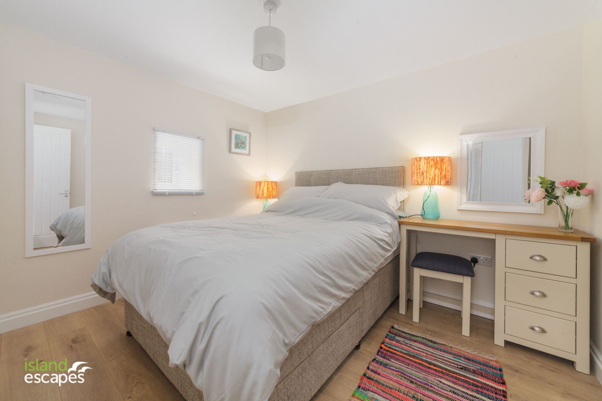 Bedroom: Double bed, built in wardrobe, bedside cabinets.