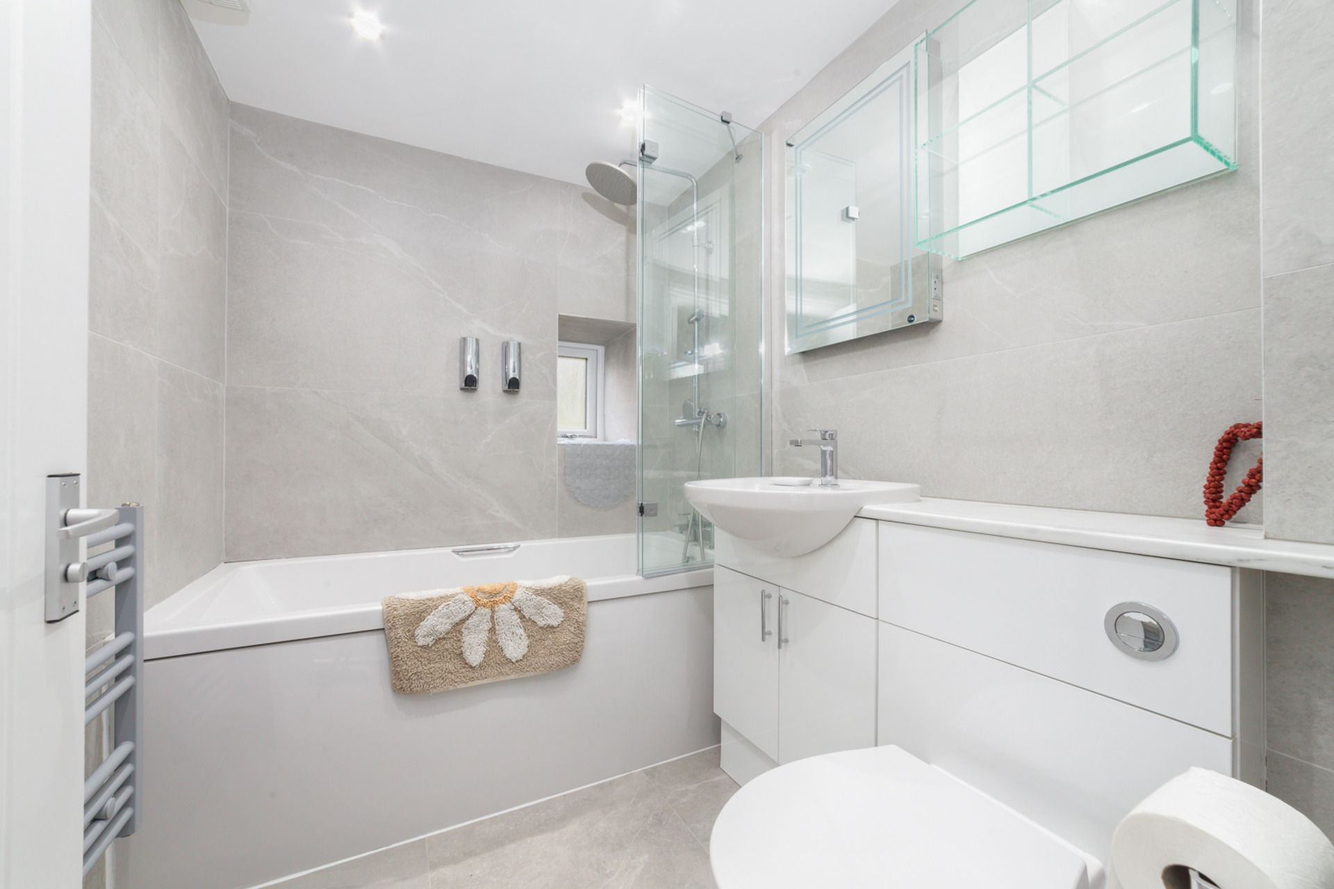 Bathroom: Separate bath with shower over, washbasin and wc.